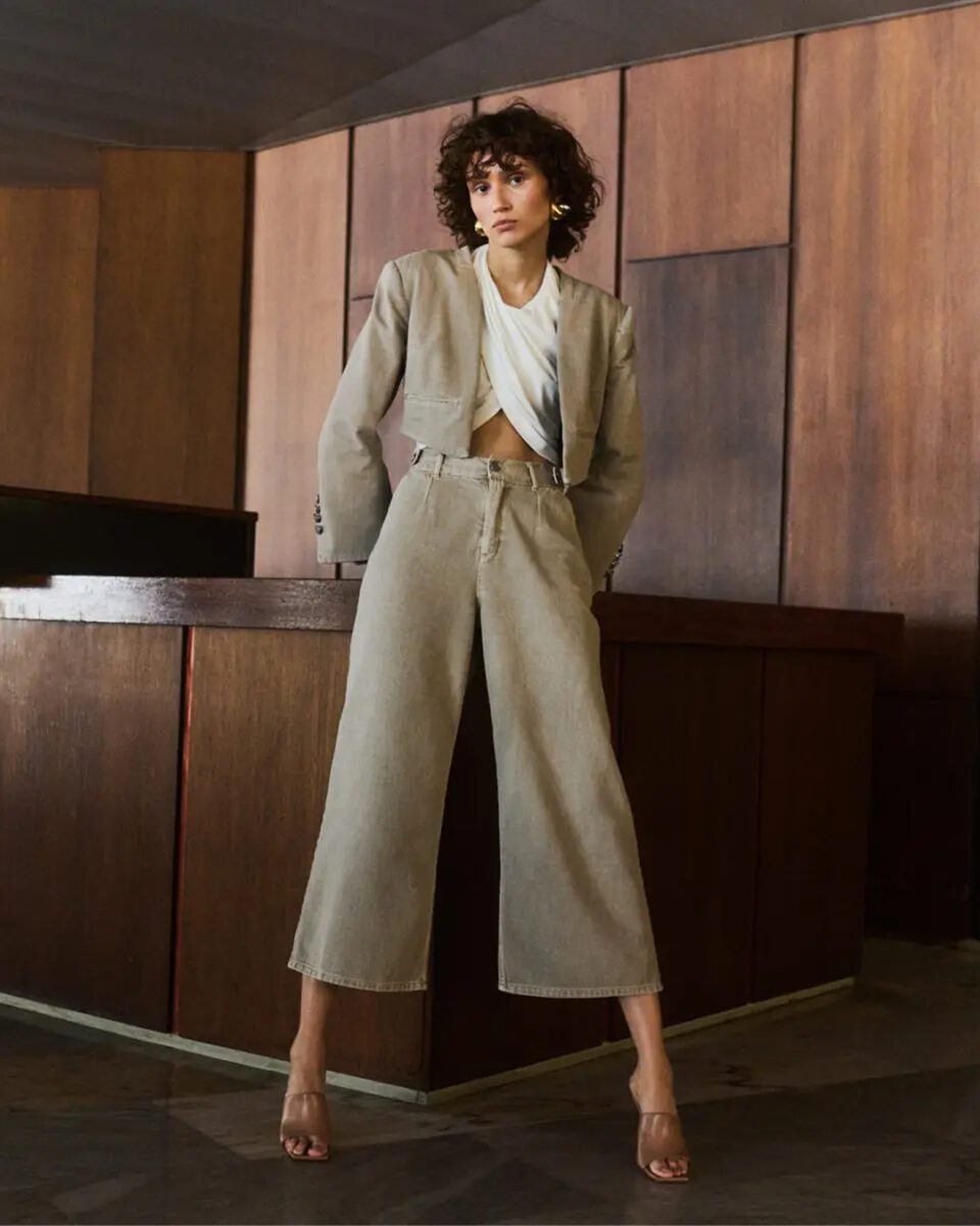 Charakterystyczne nasze oversize’owe marynarki zestawiamy z delikatnymi sukienkami i romantycznymi koszulami. W kolekcji nie braknie też uwielbianego klasycznego denimu i zamszowych shopperów, które stylowo można połączyć z torebkami w formie zdobionych frędzlami woreczków. Lata 70. Zauważyć można także w palecie barw jaka została wykorzystana. Delikatne pastele i chłodny beż harmonizują z głębokim indygo i czekoladowym brązem. Całość doskonale uzupełniają szafranowe tonacje żółtego, które skutecznie ożywiają kolekcję. Jak na boho-chic przystało, ubrania wykonano z naturalnych tkanin, takich jak bawełna, wiskoza i zamsz.